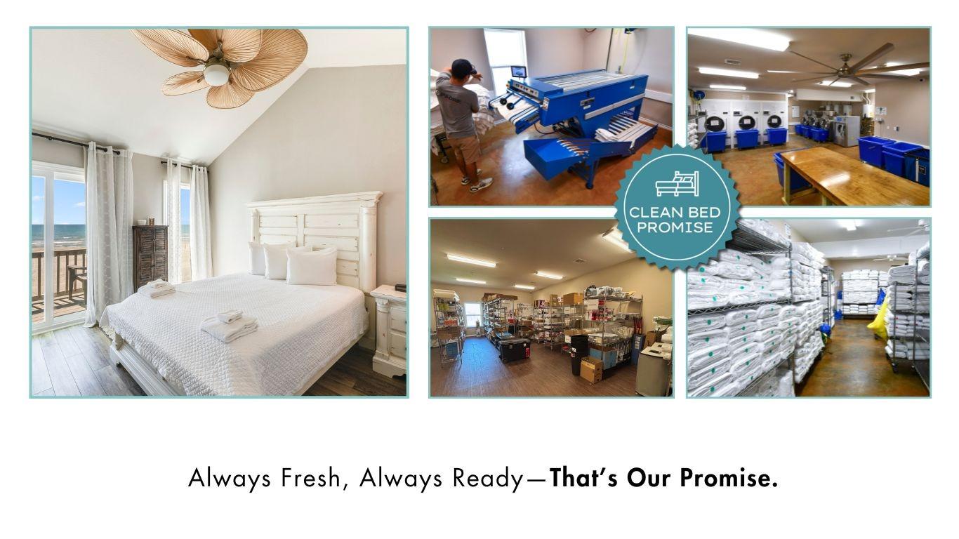 Our Clean Bed Promise. We promise freshly laundered linens—every bed, every stay, every time. To keep that promise, we exceed CDC guidelines by washing at 130°, using only commercial-grade washers and dryers. No shortcuts. No skipped steps.