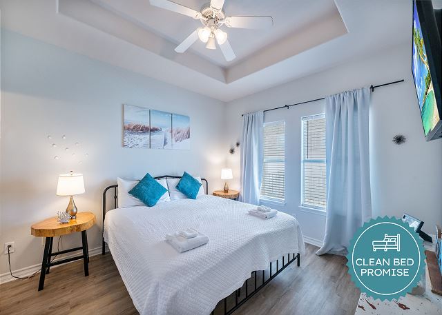 Clean Bed Promise: We wash every sheet, towel, and comforter after each stay at our in-house professional facility at over 140°F, exceeding CDC standards.