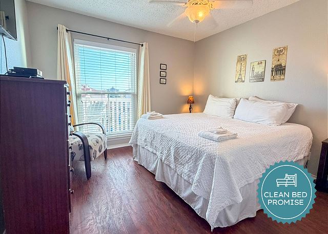 Clean Bed Promise: We wash every sheet, towel, and comforter after each stay at our in-house professional facility at over 140°F, exceeding CDC standards.