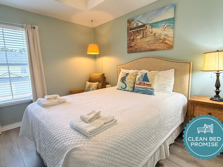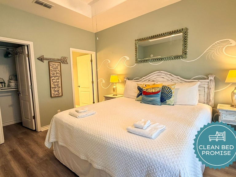 Clean Bed Promise: We wash every sheet, towel, and comforter after each stay at our in-house professional facility at over 140°F, exceeding CDC standards.