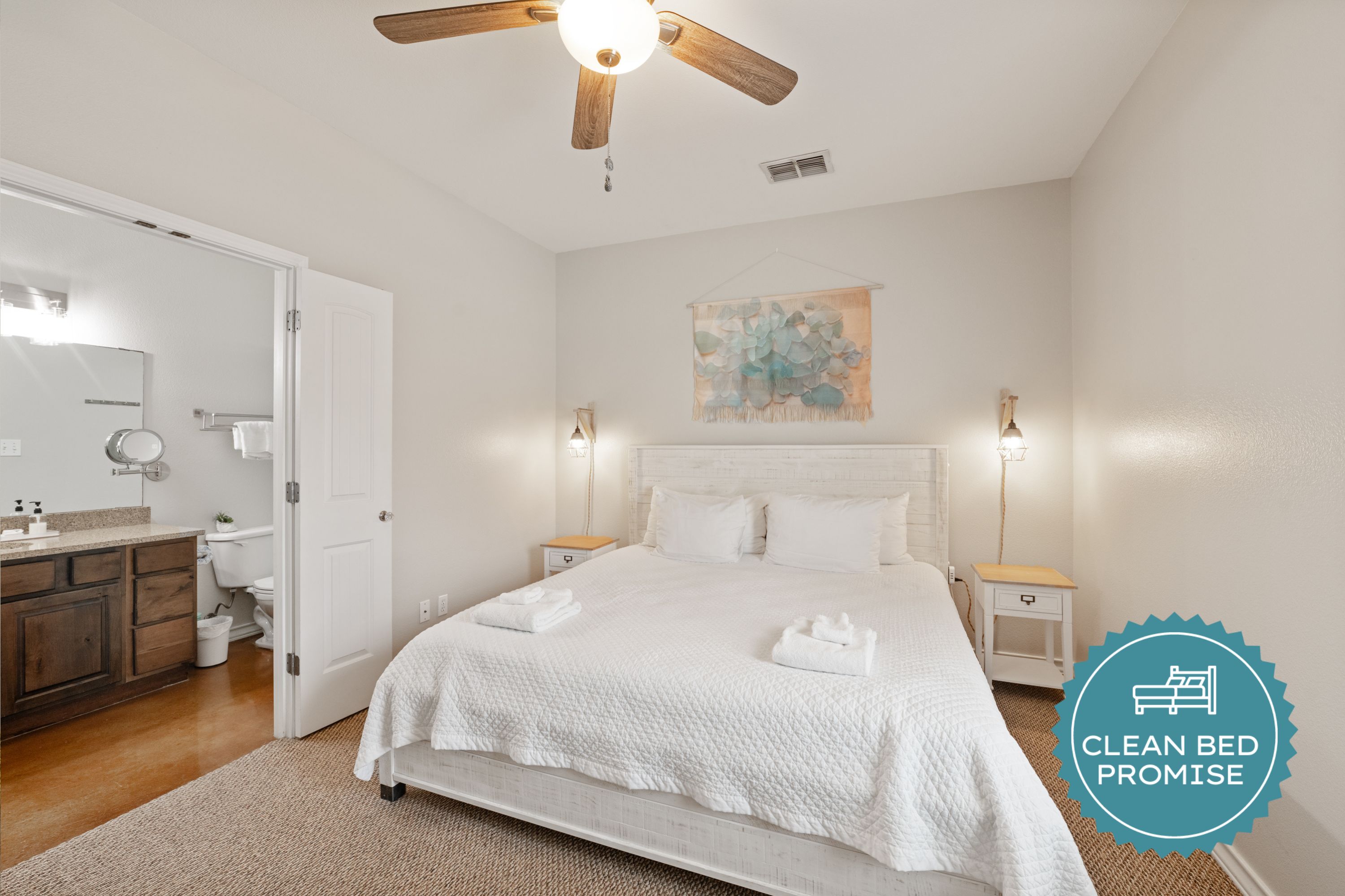 Clean Bed Promise: We wash every sheet, towel, and comforter after each stay at our in-house professional facility at over 140°F, exceeding CDC standards.
