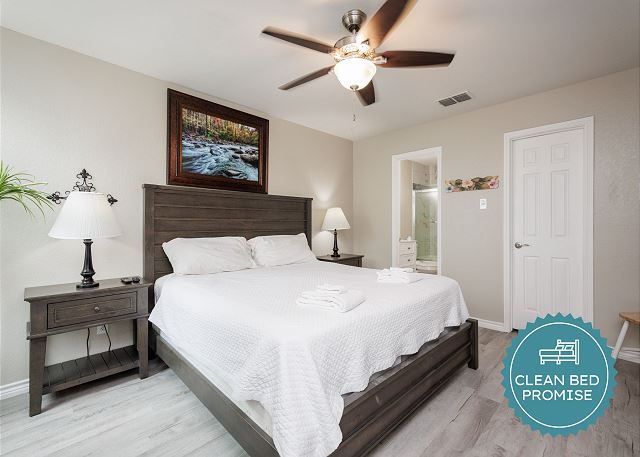 Clean Bed Promise: We wash every sheet, towel, and comforter after each stay at our in-house professional facility at over 140°F, exceeding CDC standards.