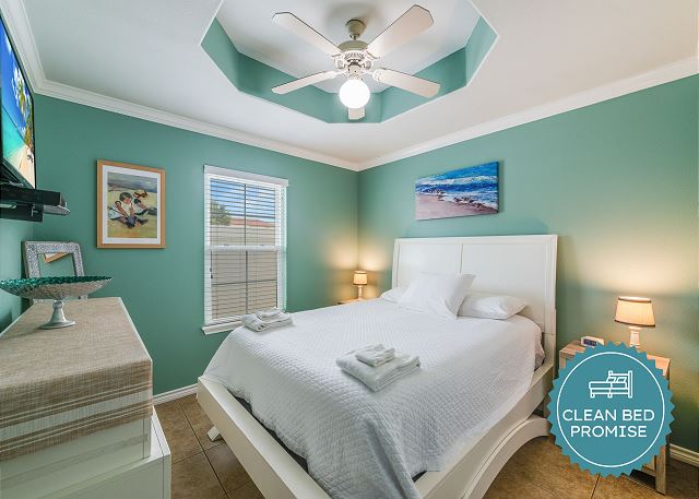 Clean Bed Promise: We wash every sheet, towel, and comforter after each stay at our in-house professional facility at over 140°F, exceeding CDC standards.