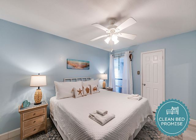 Clean Bed Promise: We wash every sheet, towel, and comforter after each stay at our in-house professional facility at over 140°F, exceeding CDC standards.