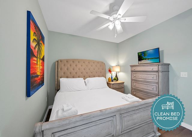 Clean Bed Promise: We wash every sheet, towel, and comforter after each stay at our in-house professional facility at over 140°F, exceeding CDC standards.