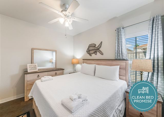 Clean Bed Promise: We wash every sheet, towel, and comforter after each stay at our in-house professional facility at over 140°F, exceeding CDC standards.