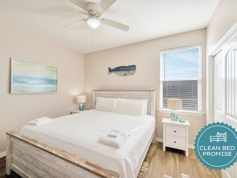 Clean Bed Promise: We wash every sheet, towel, and comforter after each stay at our in-house professional facility at over 140°F, exceeding CDC standards.