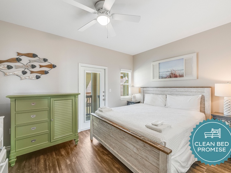 Guests appreciate the comfortable, straightforward design that makes it easy to settle in and feel at home. Plush seating and an open living layout create a relaxed space for conversation, movie nights, or winding down after time outdoors. With private balconies overlooking the pool and a practical three-bath setup, this home offers convenience, comfort, and a quieter island atmosphere. The beach is just a short walk away, making it easy to head out for morning strolls, afternoon swims, or sunset views without needing to load up the car.