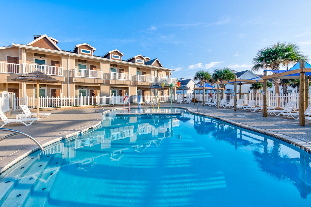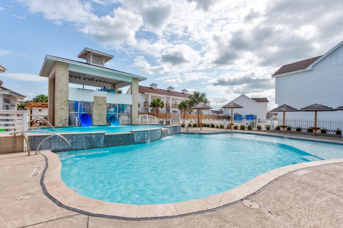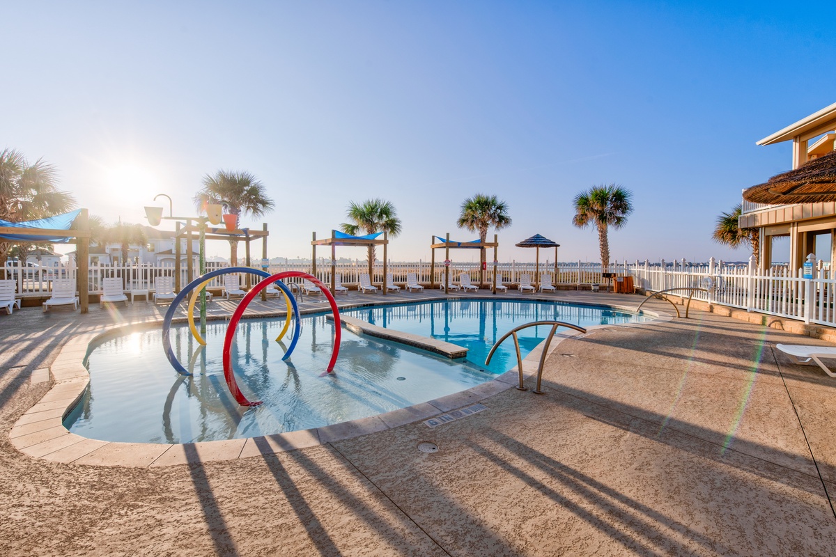 Aruba Bay Resort offers something for the entire family! Resort style pool with 2 water slides, game room, fitness center, boat slips & pickleball!